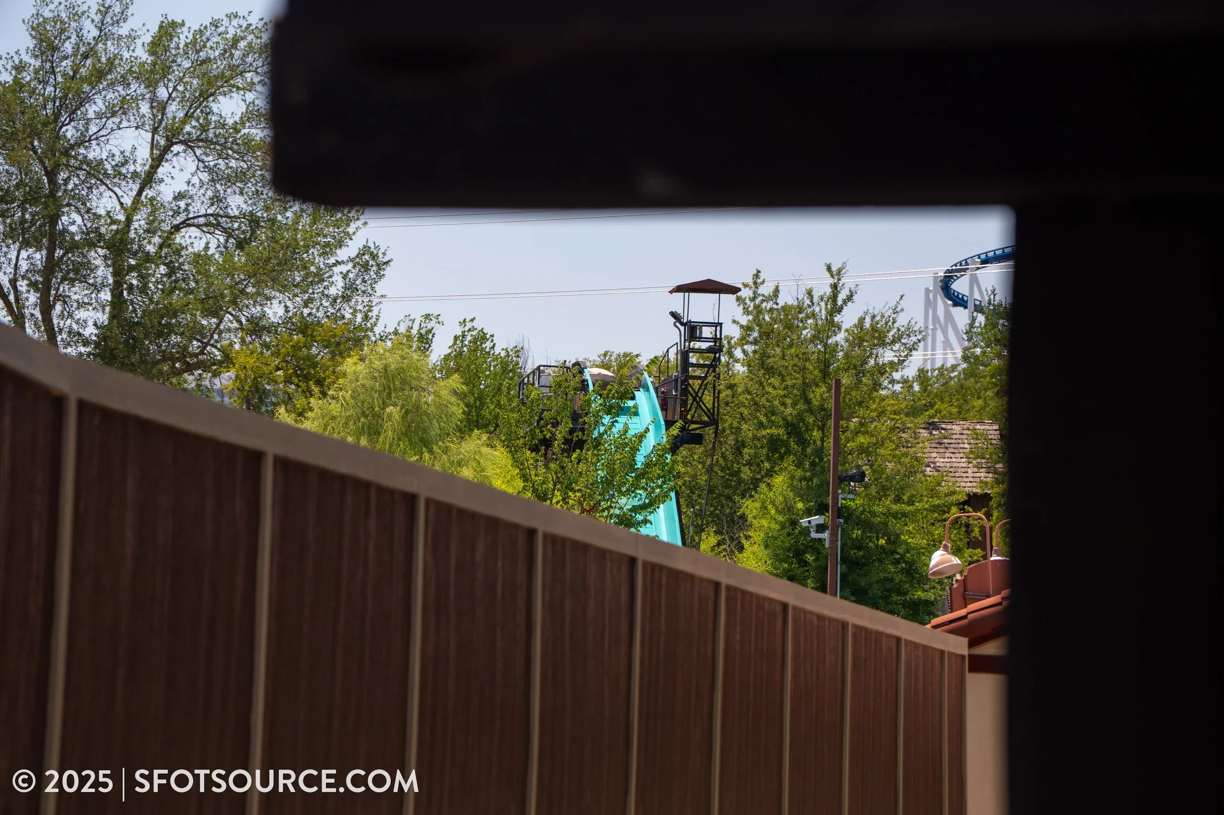 Six Flags Over Texas continues their big transformation for 2026. The to-be-named dive coaster construction moves forward with more footers popping up. Footer installations have extended closer to the park’s front gate, along with the area directly behind Conquistador. El Aserradero (Flume 2) also looks to be receiving a refresh, likely due to its proximity to the new roller coaster. Visible from the park is a repainted final drop. Along Spain’s construction walls are signs teasing a new dining experience for 2026.